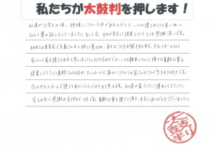 素敵な家を建てて頂き、本当にありがとうございました。