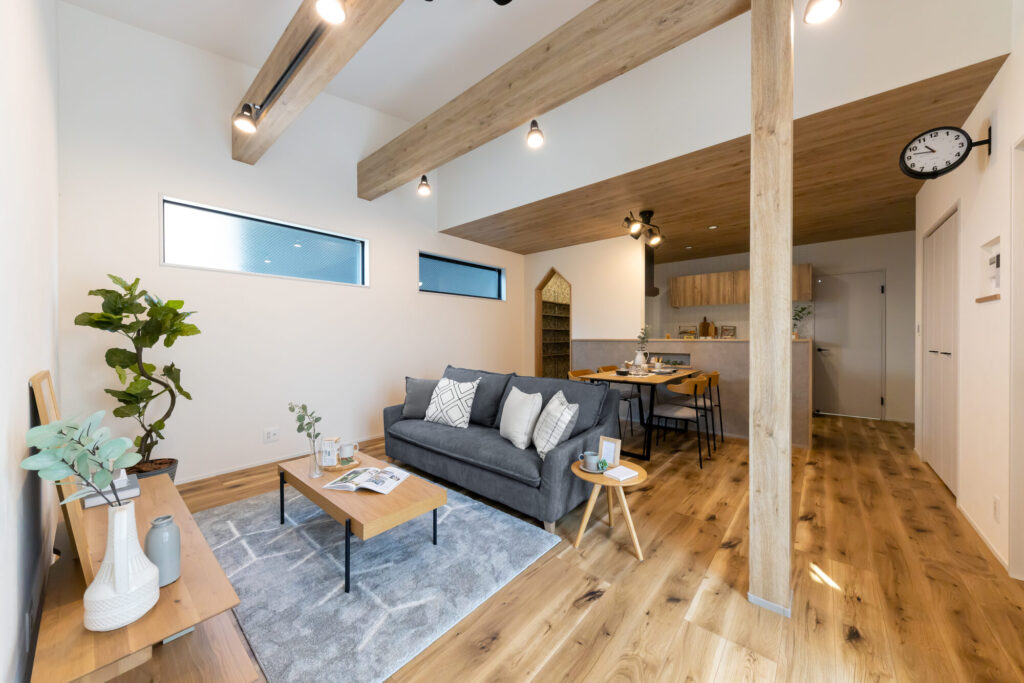 • 光を採り入れつつプライバシーを守る高窓で明るいリビング