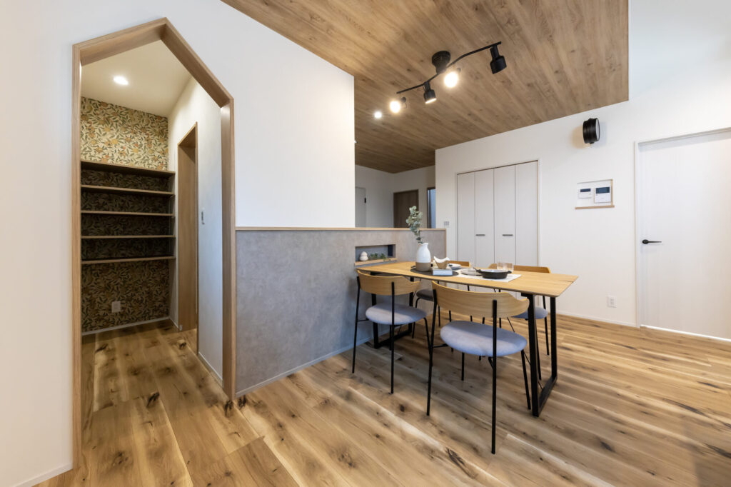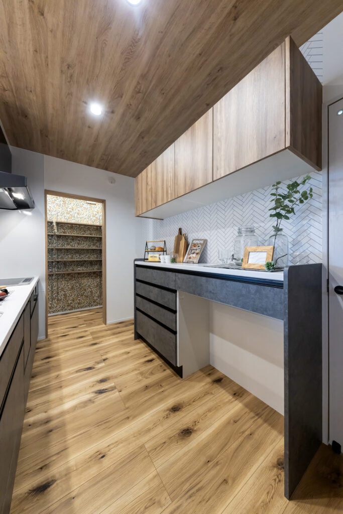 • 三角垂れ壁の先のパントリーはキッチンへの近道に