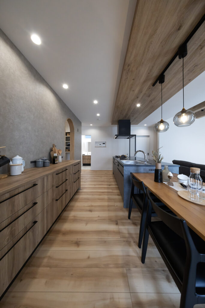 廊下の扉を無くしゆるやかに空間を間仕切りしたLDK