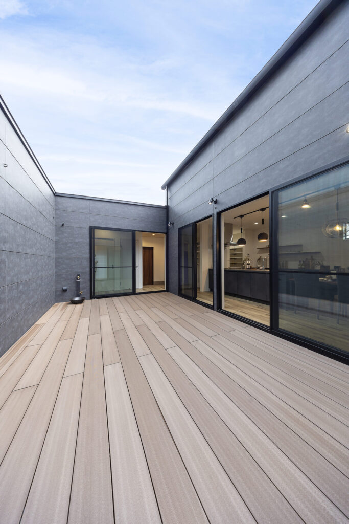 アウトドアリビングとして家族で楽しめる中庭が魅力的