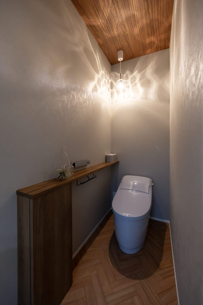 トイレは照明が引き立つ落ち着いた色合いに仕上がりました