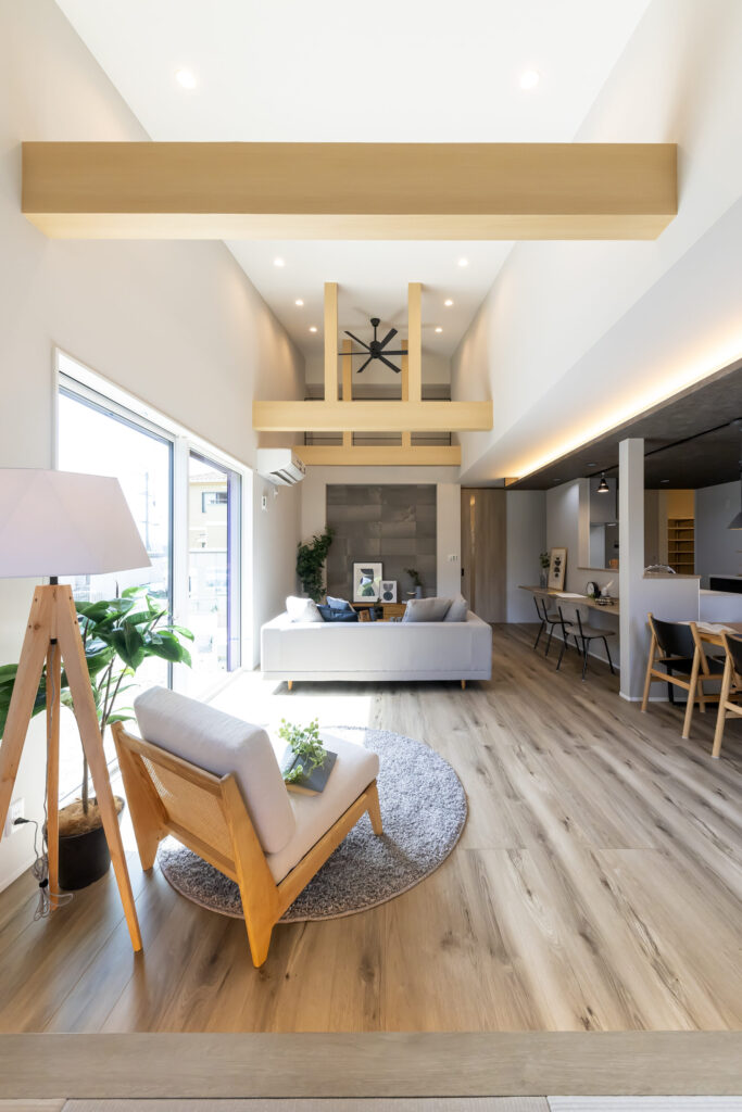 ロフトとつながった吹き抜けは家族のコミュニケーションの一部としても機能的